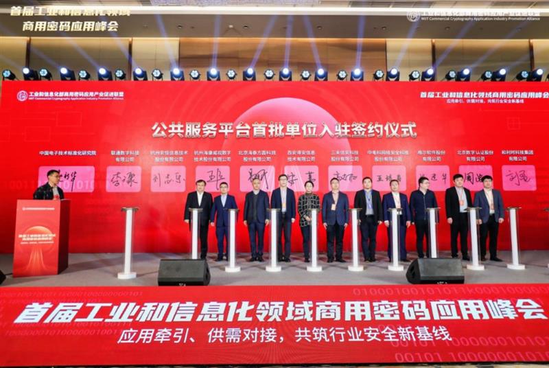 ??在公共服務(wù)平臺(tái)發(fā)布及簽約環(huán)節(jié),浙江省經(jīng)信廳、浙江省通管局、浙江省密碼局、電子標(biāo)準(zhǔn)院等相關(guān)領(lǐng)導(dǎo)共同發(fā)布工業(yè)和信息化行業(yè)密碼應(yīng)用產(chǎn)業(yè)基礎(chǔ)公共服務(wù)平臺(tái),聯(lián)通數(shù)科、杭州安恒等10家企業(yè)簽約入駐該平臺(tái),成為首批簽約入駐單位。聯(lián)通數(shù)科黨委書記、總裁李廣聚代表聯(lián)通數(shù)科與中國(guó)電子技術(shù)標(biāo)準(zhǔn)化研究院進(jìn)行簽約。