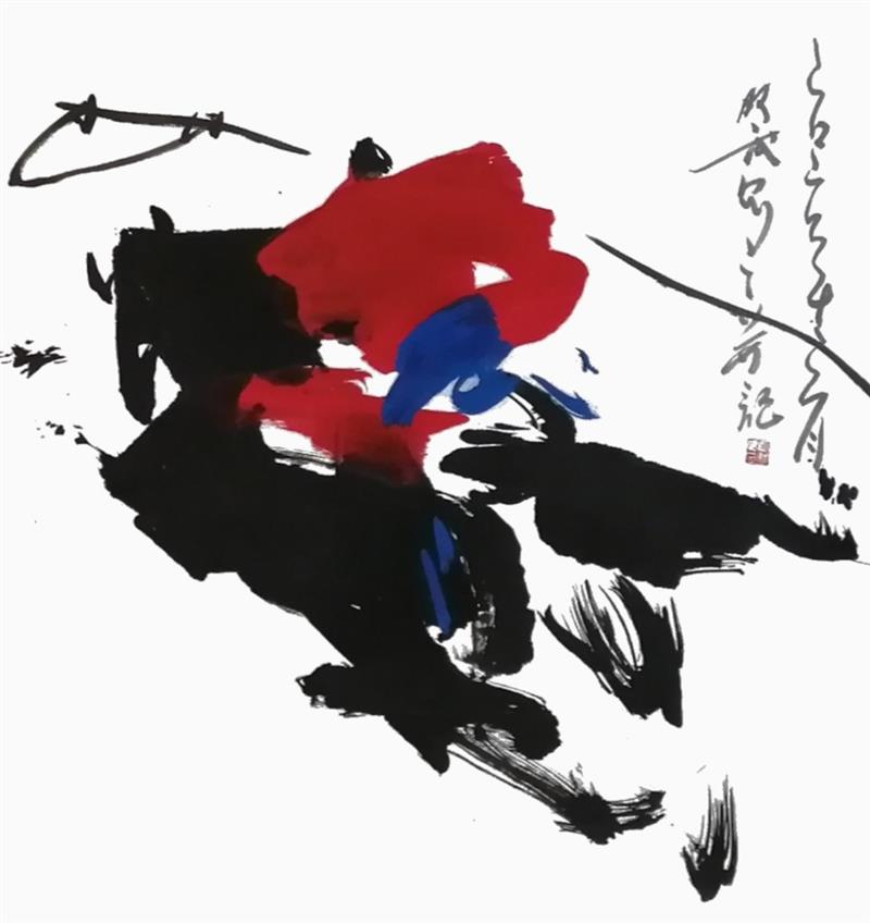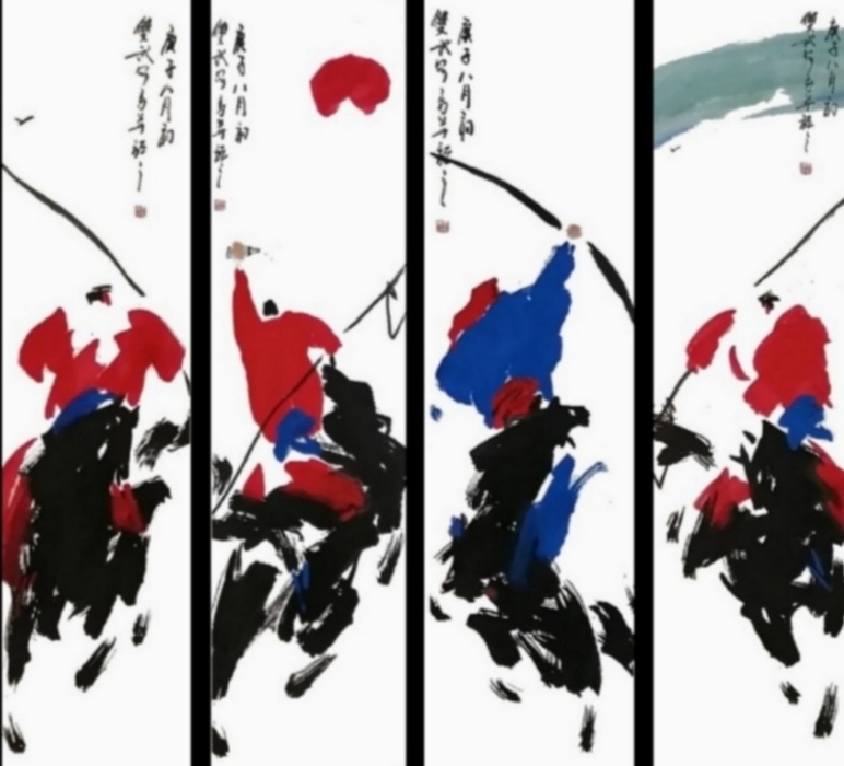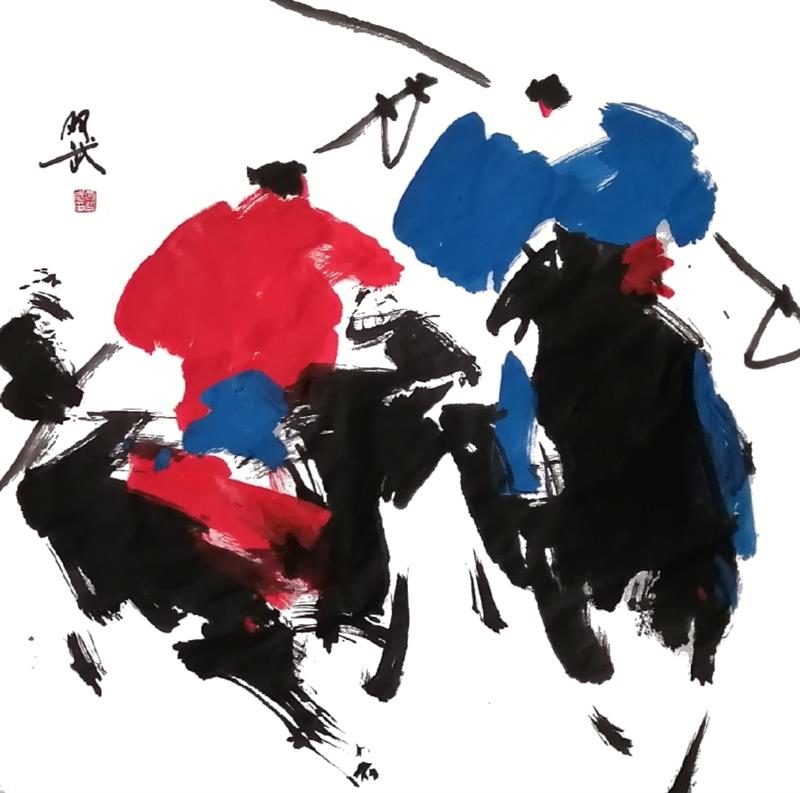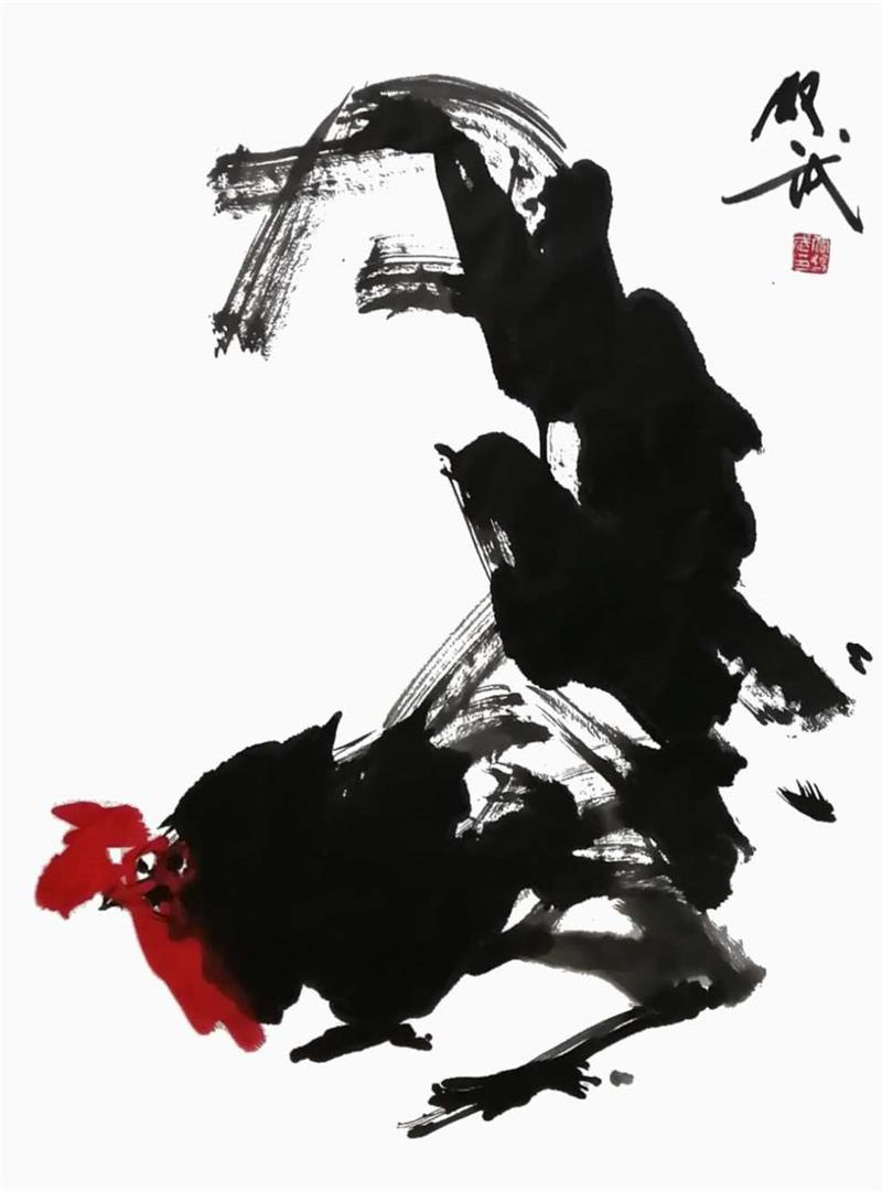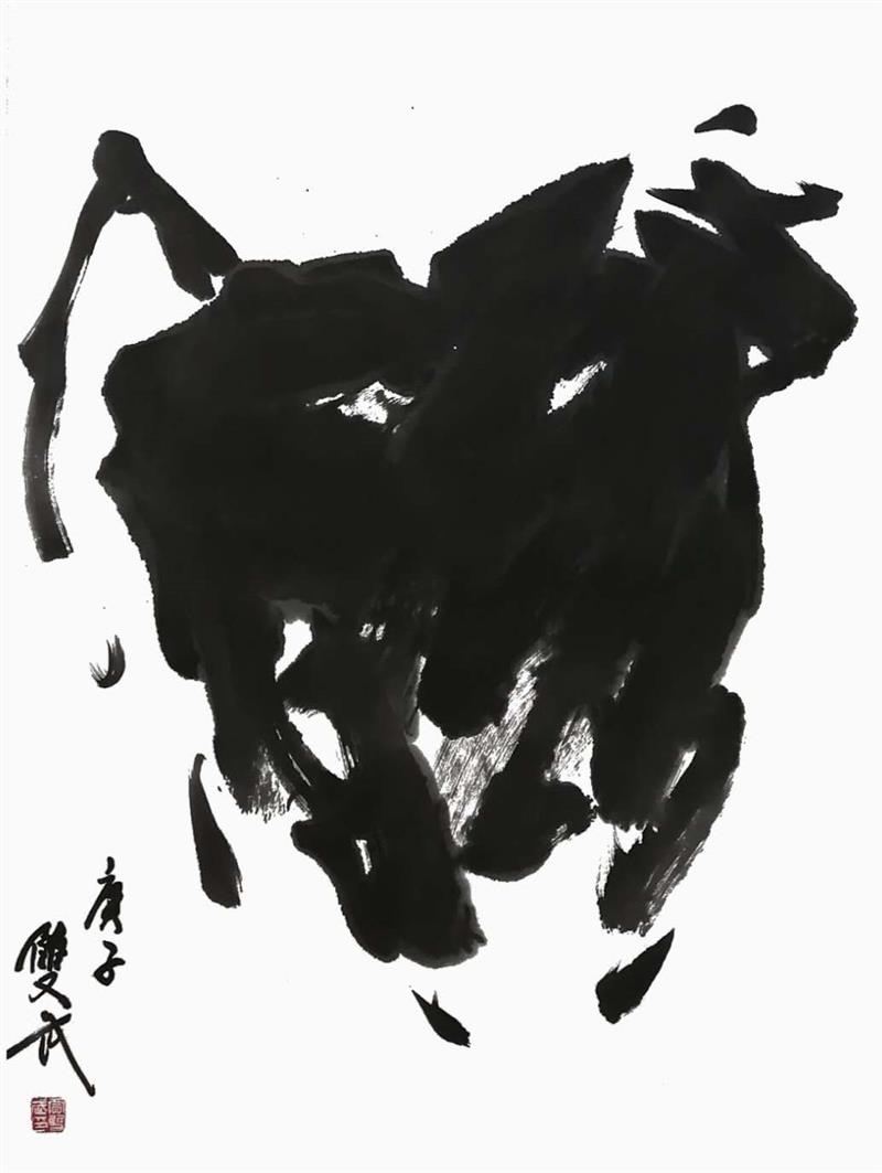 有這樣一位畫家,他的作品個性鮮明,有很強烈的時代感和現代藝術氣息。他涉獵題材廣泛,尢善畫馬、牛等物。他運用焦墨,重墨刻畫物象,突出了表現對象的動、勢、神。團塊兒的組合、運動不僅是他造型的一大特點,同時也給觀者很強的視覺沖擊力。有媒體稱他“大筆大墨大寫意”。他筆下的奔馬似有雷霆萬鈞之勢,他筆下的牛又恰有萬夫不當之勇。他的作品傳遞出去的永遠是陽剛,奮發向上,百折不撓之精神。他就是我國當代青年大寫意畫家賈雙武。