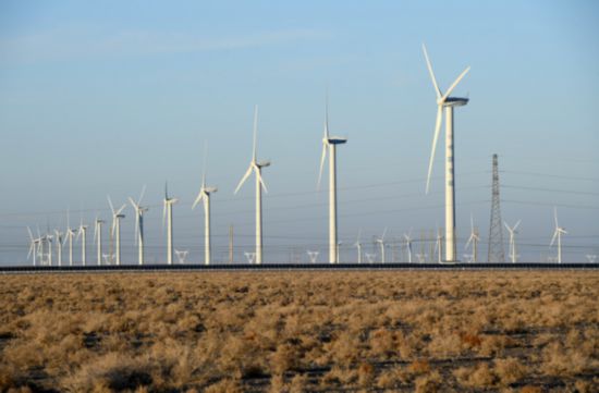 這是2021年12月8日拍攝的中節(jié)能(甘肅)風(fēng)力發(fā)電有限公司玉門昌馬風(fēng)電場(chǎng)的風(fēng)機(jī)。 新華社記者 范培珅 攝
