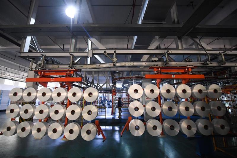 12月22日在位于浙江省湖州市吳興區(qū)東林鎮(zhèn)的新鳳鳴集團湖州基地生產車間拍攝的運轉中的自動化生產線。新華社記者 徐昱 攝