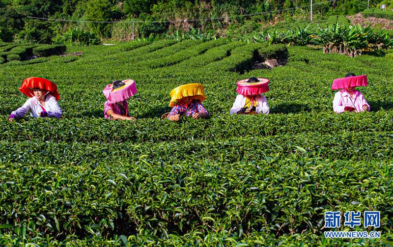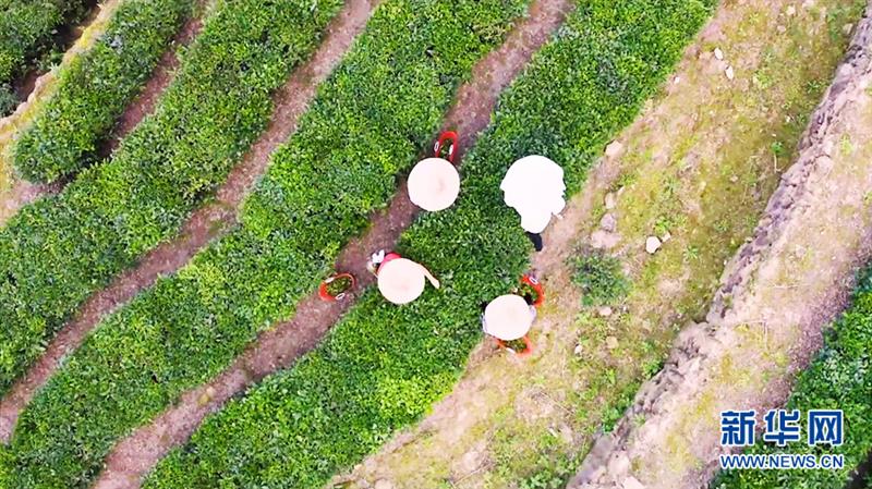 當(dāng)?shù)夭柁r(nóng)搶抓農(nóng)時(shí)采摘春茶。新華網(wǎng)發(fā)