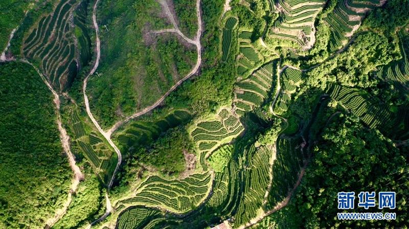 這是無(wú)人機(jī)拍攝的茶園。新華網(wǎng)發(fā)