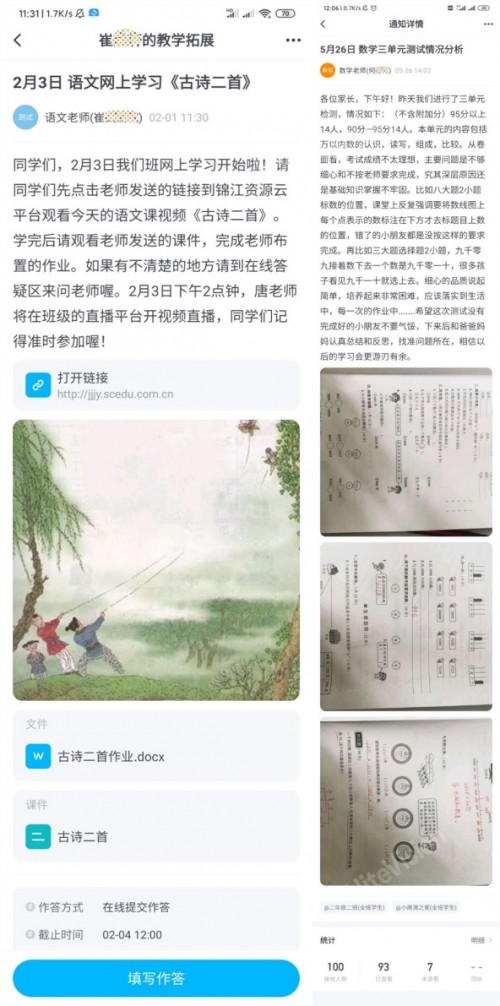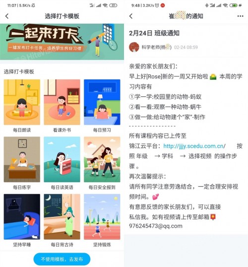 錦江e教支持教師線上發(fā)布通知、發(fā)起打卡等
