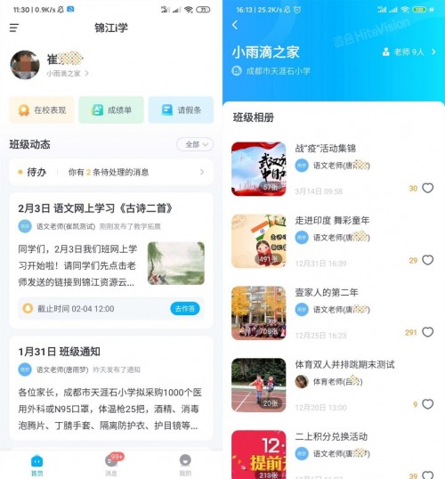 學(xué)生和家長(zhǎng)通過錦江i學(xué)隨時(shí)查看班級(jí)動(dòng)態(tài)、班級(jí)相冊(cè)