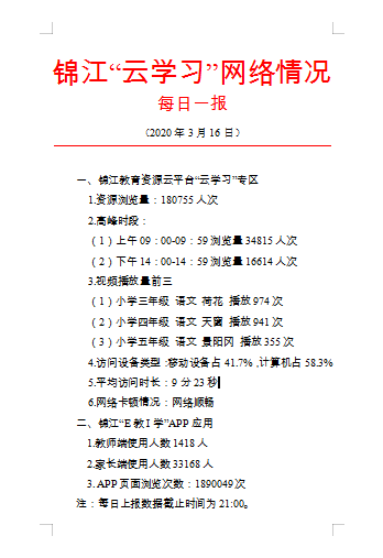 3月16日錦江“云學(xué)習(xí)”平臺(tái)使用情況