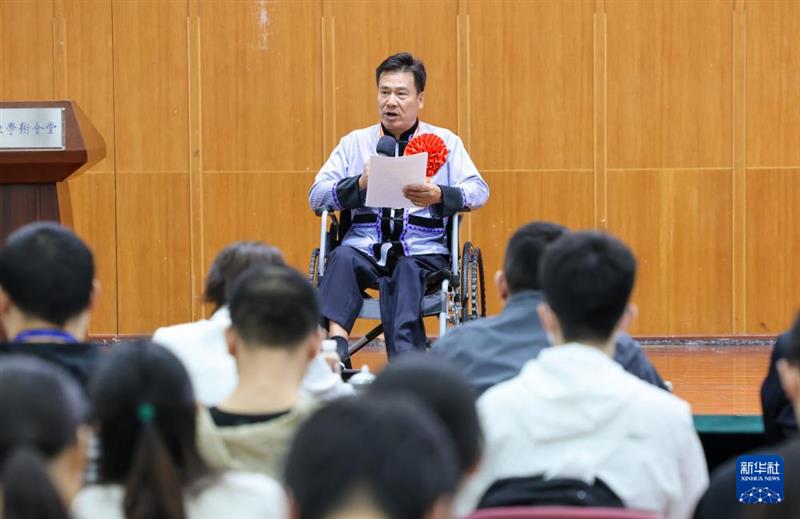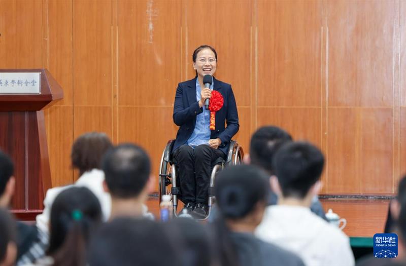 ??國際殘疾人職業(yè)技能競賽按摩項目冠軍王俊、江西省吉安市青原區(qū)新圩鎮(zhèn)新圩村衛(wèi)生所鄉(xiāng)村醫(yī)生陳桂平、巴黎殘奧會射箭冠軍陳敏儀、國際殘疾人職業(yè)技能競賽文本處理項目冠軍陳良杰、天津市肢殘人協(xié)會主席劉瀚文、重慶市公安局沙坪壩區(qū)分局紅巖派出所教導(dǎo)員何巧、天津市寶坻區(qū)殘疾人勞動服務(wù)所干部李代立等7名全國自強模范和全國殘疾人工作先進個人,在天津職業(yè)技術(shù)師范大學(xué)講述他們的故事。
