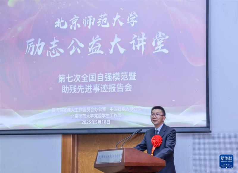 ??5月18日在北京師范大學(xué)拍攝的第七次全國自強模范暨助殘先進事跡報告會現(xiàn)場。新華社記者 殷剛 攝