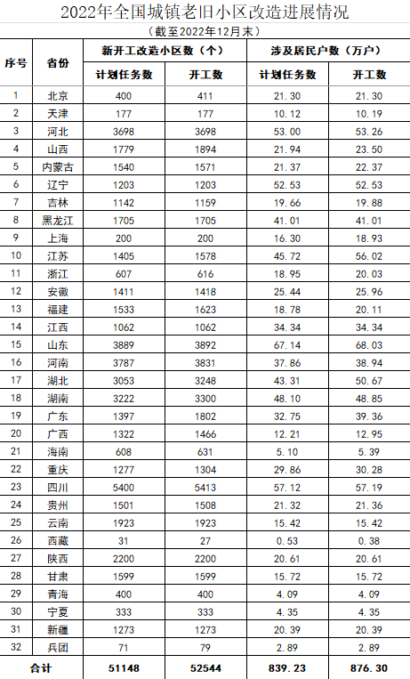 2022年全國城鎮(zhèn)老舊小區(qū)改造進(jìn)展情況(來源:住房和城鄉(xiāng)建設(shè)部)