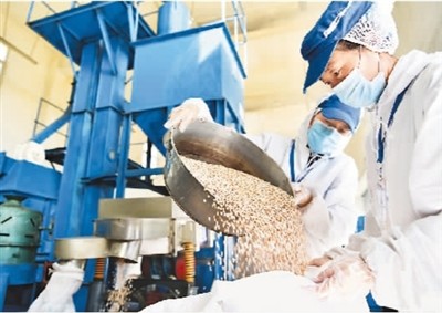 西藏自治區(qū)洛隆縣洛宗特色產(chǎn)品開(kāi)發(fā)公司生產(chǎn)的青稞特色產(chǎn)品在拓寬銷(xiāo)路的同時(shí),為當(dāng)?shù)厝罕娫黾泳蜆I(yè)崗位。目前,該公司提供45個(gè)就業(yè)崗位,與洛隆縣1000余戶青稞種植戶簽訂了青稞收購(gòu)合同。圖為公司員工將烘炒好的青稞裝袋。