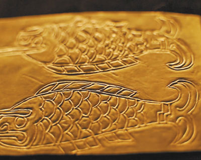 面具殘片重約280克,專家推測面具完整重量在500克左右。“不做到極致,就還原不出文物內在的感覺。”王莘閣咬咬牙到銀行買來500克純金金塊。在他看來,只有堅持在制作過程中保持信念感,追求極致的美感,觀眾才能感受到文物帶來的震撼。