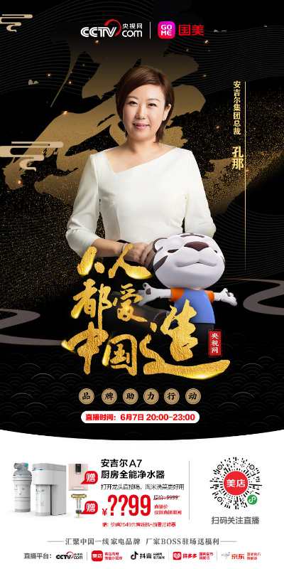 這次除了央視名嘴尼格買提現身,主持人伊一也加盟其中。而更受矚目的當屬本次直播的主角們——格力、安吉爾、海信、海爾、老板、九陽、美的、科沃斯等清一色的國貨家電產品。近年來隨著民族品牌不斷崛起,國貨產品也越來越受到消費者的青睞。其中作為專注改善國人飲用水生活方式的品牌,高端凈飲水專家安吉爾這次的亮相,頗為引人關注。