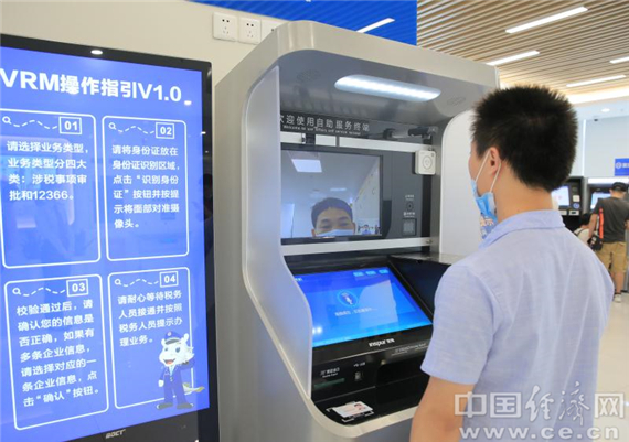 圖為龍華區稅務局第一稅務所內,一位納稅人正在通過自助辦稅VRM終端辦理業務。