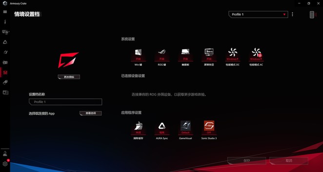 ROG的冰刃4新銳預置了幾種性能模式,使用電池時有靜音、性能兩種,而外接電源時可以進入增強模式。只需要按下鍵盤上“敗家之眼”的功能鍵就可以一鍵開啟控制中心,除了可以看到筆記本的各種參數和運行狀態,調節風扇轉速等各種設置。