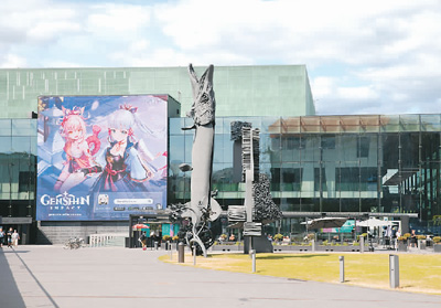 近日,在芬蘭赫爾辛基街頭,中國公司米哈游制作的游戲《原神》宣傳廣告海報占據醒目位置。