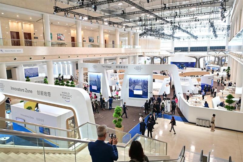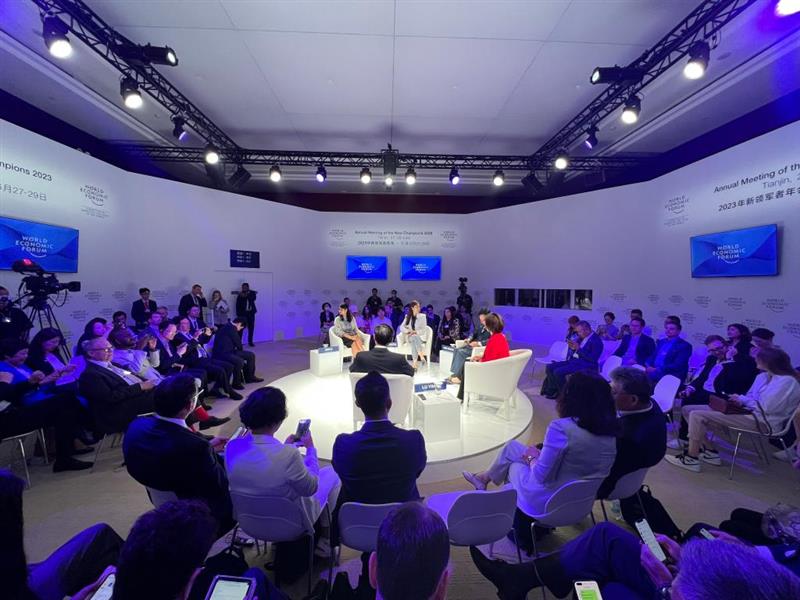 第十四屆夏季達(dá)沃斯論壇現(xiàn)場(chǎng)。新華社記者李鑫 攝