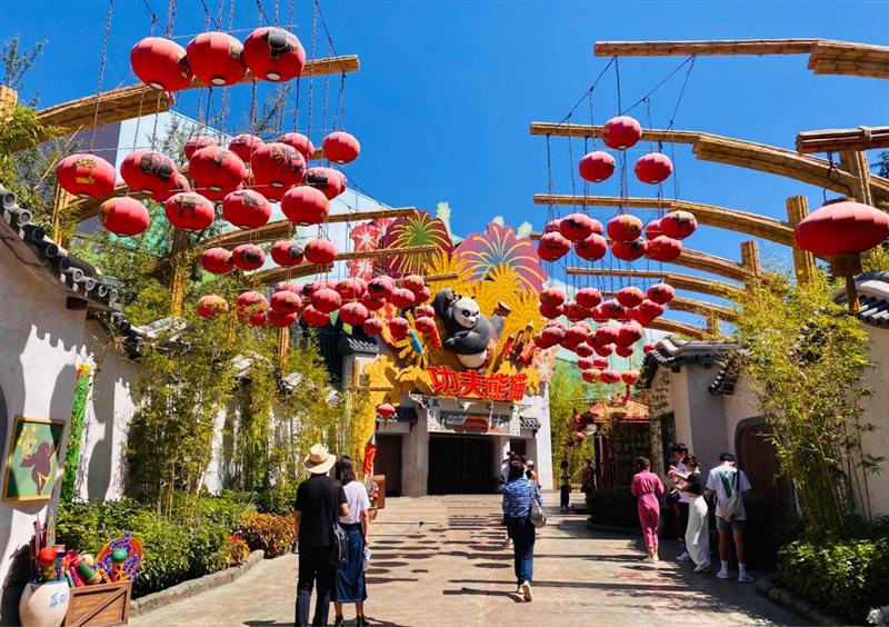 北京環球度假區的功夫熊貓蓋世之地主題景區。新華社記者張漫子攝