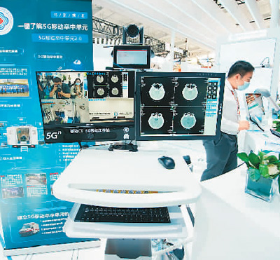 服貿(mào)會上的5G移動診療設(shè)備。新華社記者 張晨霖攝
