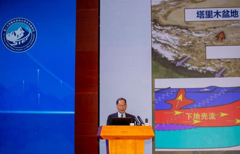 8月18日,第二次青藏科考隊隊長姚檀棟院士在拉薩對本次科考十大任務的重要成果進行集中發布。新華社記者 姜帆 攝