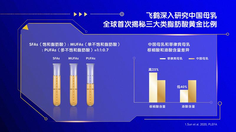 其次是去年10月,飛鶴在國際脂肪酸研究學(xué)會的官方雜志上,發(fā)布了首個描述中國母乳脂肪酸比例特點(diǎn)的系統(tǒng)性綜述。