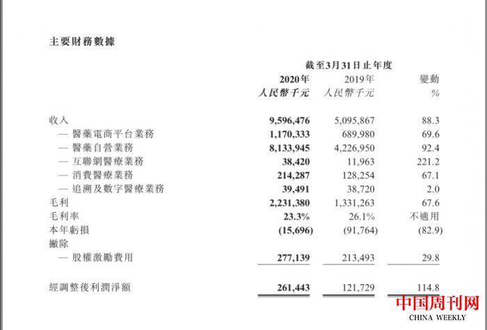 原標(biāo)題:阿里健康2020財年凈利同比增114.8% 互聯(lián)網(wǎng)醫(yī)療服務(wù)收入大漲221.2%