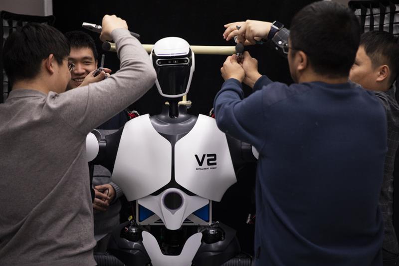 ??2024年1月31日,人形機器人攻關團隊科研人員在多模態人工智能系統全國重點實驗室調試機器人。新華社記者 金立旺 攝
