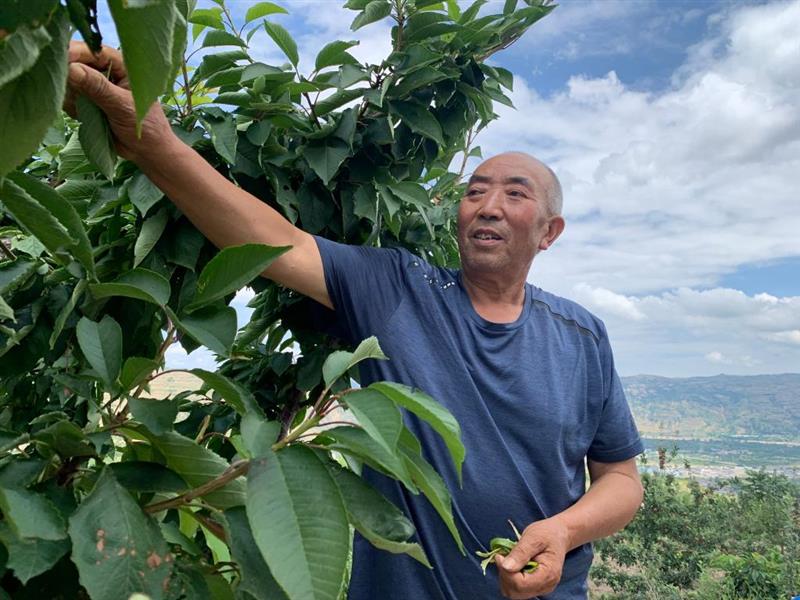 開著電動三輪車,沿著硬化的“產業路”盤山而上,百畝繁茂的櫻桃園出現在胡對生眼前。