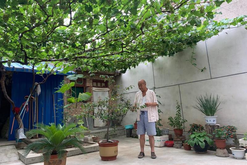 胡家大莊村的一戶小院里,葡萄已經結果。新華社記者張玉潔攝