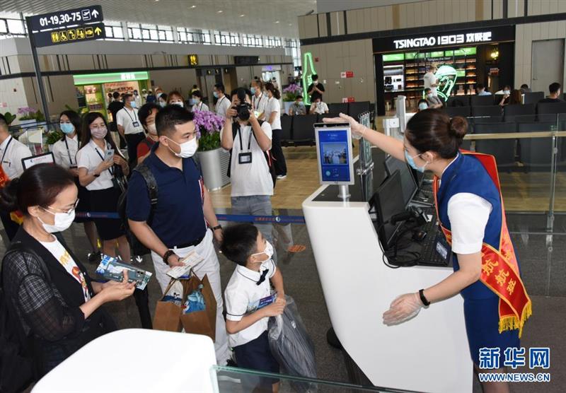 8月12日,首航旅客在辦理登機。新華社記者 李紫恒 攝