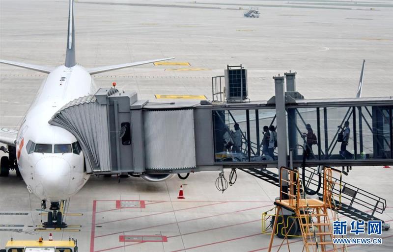 8月12日,旅客通過廊橋登上執(zhí)行首航的飛機。新華社記者 李紫恒 攝
