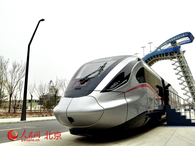 國內首列時速200公里市域動車組亮相。人民網 李世奇攝