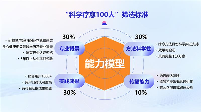 簡知愈見堅信專業價值應該被市場看見,科學方法值得向更多人推廣。項目將在全國范圍內公開招募在身心健康療愈領域具有專業背景、科學方法、實踐成果和良好傳播力的優秀從業者和專家。同時,項目采用嚴謹公正的評選流程,包括全國海選、資質篩選、專業能力評估,最終在2026年第二屆中國身心健康與療愈+大會現場正式發布《科學療愈100人》官方名單。