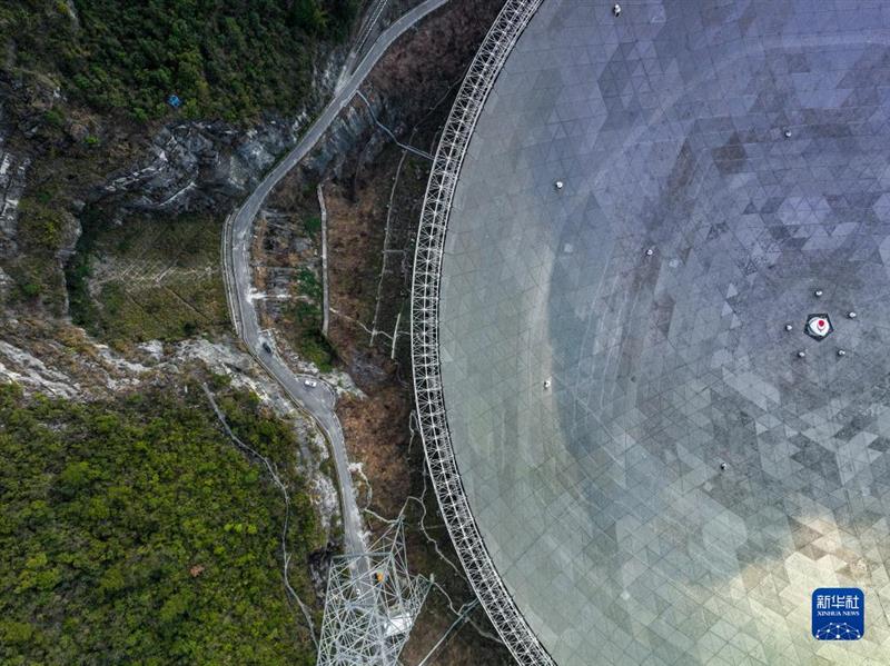 2月13日拍攝的“中國天眼”全景(維護保養期間拍攝,無人機照片)。新華社記者 歐東衢 攝