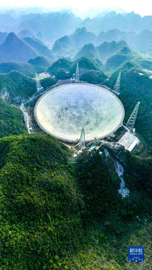 2月13日拍攝的“中國天眼”全景(維護保養期間拍攝,無人機全景照片)。新華社記者 歐東衢 攝